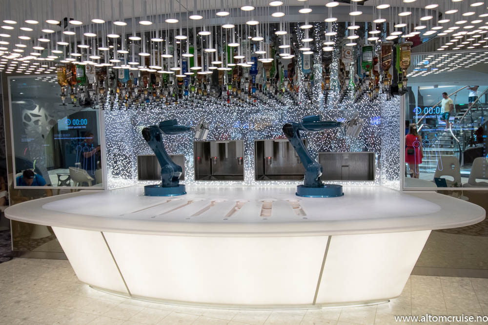 Kan roboter erstatte bartendere? Foreløpig nei, etter vår erfaring med Bionic Bar. Ja, det er veldig kult med roboter som danser og serverer deg drinker, men når kvaliteten på cocktailene som kommer ut er dårlig så trekker det inntrykket ned. Noe kan nok forklares med innkjøringsproblemer på et nytt skip, så ta gjerne turen innom for å teste det selv. Det som ER veldig kult er muligheten for å blande cocktails som du vil selv, som videoen nedenfor viser.
