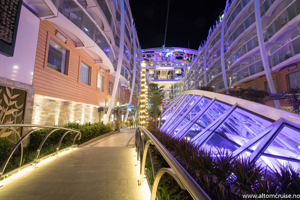 Igjen er det ikke store forskjellen i fysisk størrelse men det er en hel rekke med små oppgraderinger rundt ombord som gjør at det føles litt annerledes ut enn Oasis og Allure. Den mest synlige oppgraderingen er uten tvil sklien «The Abyss» bak ved flowrider surfesimulatorene og selvfølgelig de tre vannskliene midt på skipet.